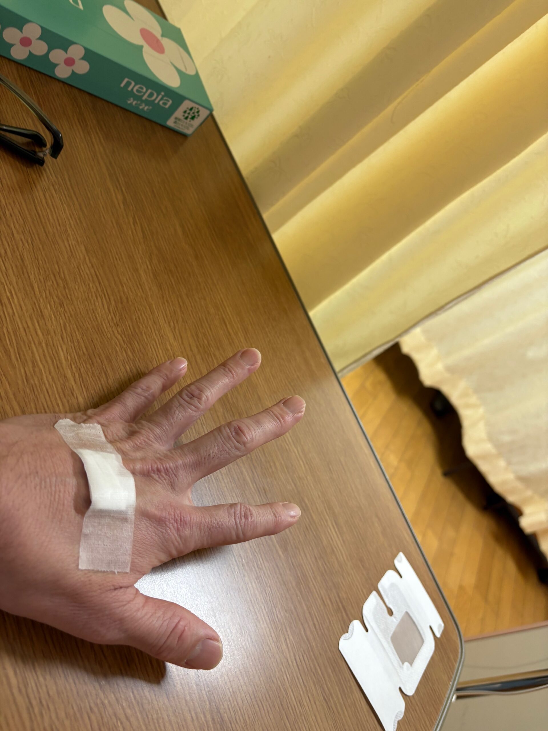 その2:点滴の針が入らない問題 その後、手の甲への点滴。 左手、入らず。(担当:男性看護師さん……)